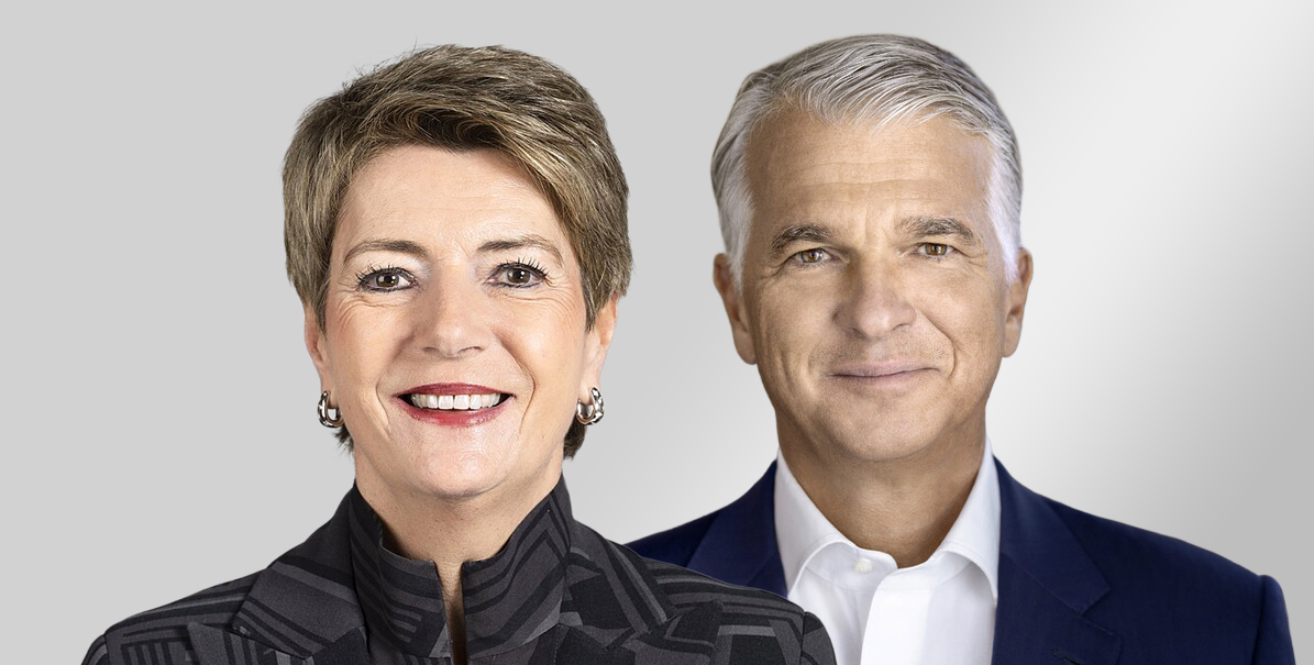 Karin Keller-Sutter, ministra das Finanças suíça e Sergio P. Ermotti, CEO do UBS | Fotos: LinkedIn/wikipedia